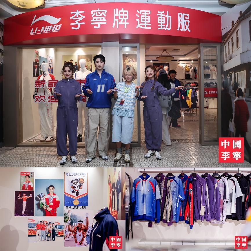 「复古专卖店」空间将时间“定格”在90年代的李宁品牌第一家门店,参与者走入纯正还原年代感的店铺装饰、陈列之中,仿佛时间在缓缓倒退。当“店员”怀着强烈自豪感向参与者介绍“我们家刚刚还赞助了北京亚运会,是首个赞助中国体育代表团的中国运动品牌!”,李宁先生“让中国健儿身着中国运动品牌登上最高领奖台”的品牌创立初衷,仿佛又在每位参与者心中落下“深深一印”。参与者不仅在这里感受老时光的购物方式,还可以体验结合经典运动元素与时尚设计的复古运动系列。除了由李宁专业乒乓鞋进行时尚化演变而来的复古风格运动板鞋得到现场欢迎之外,以李宁先生巨幅海报中穿着为灵感的复古运动系列卫衣更成为目光焦点。该款卫衣还致敬了1984年洛杉矶奥运会李宁先生体操比赛服号码牌的「11」图案,凝聚着属于一代人的记忆与荣耀。而此次王楚钦先生的上身演绎,更展示了李宁品牌与中国国家乒乓球队的深厚渊源:李宁品牌携手中国国家乒乓球队25载,与中国国家乒乓球队共荣耀,一次次伴随着运动员征战赛场,也是李宁品牌坚守初心,见证并参与中国体育跨世纪辉煌发展。